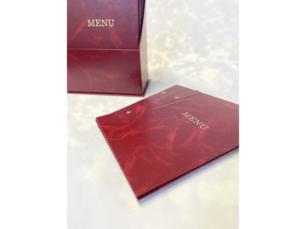 Na desce je zlatě vyraženo "MENU".