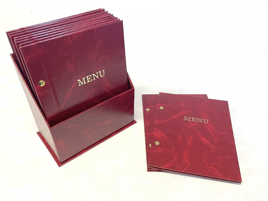 Sada 10 jídelních lístků A5 v boxu, koženka červená.