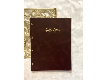 A5 jídelní lístek má desky, které mají hnědý potah a jsou omyvatelné.
