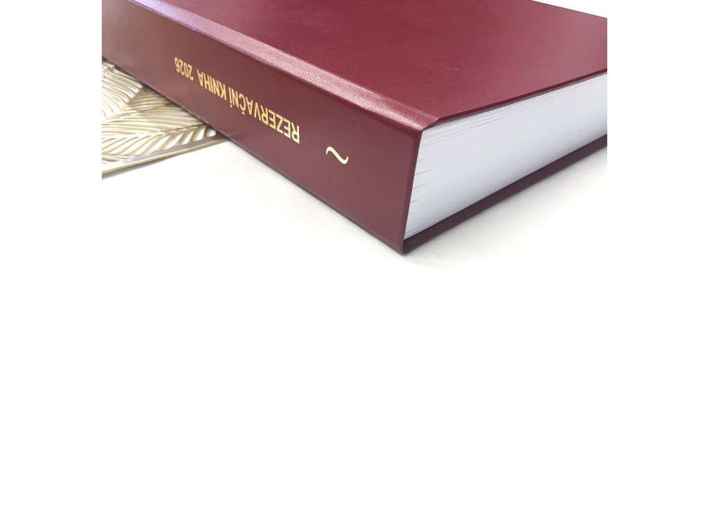 Na desce je zlatě nebo stříbrně vyraženo Rezervační kniha.